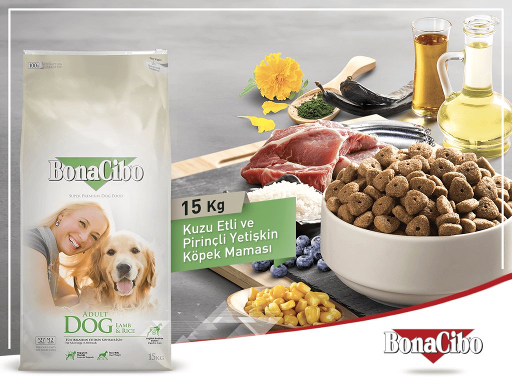 Bonacibo Cat Dog Food Twitterren Optimum Duzeyde Protein Yag Ve Karbonhidrat Dengesi Ile Bonacibo Adult Dog Lamb Rice Kopeginize Omru Boyunca Duzenli Enerji Ve Iyi Bir Vucut Yapisi Temin