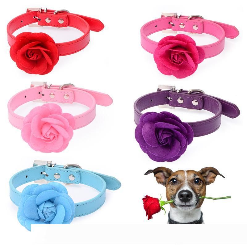 Satin Al 8 18 Icin Pu Deri Kopek Tasmasi Pembe Kirmizi Mor Mavi Gul Neck Ile Kopek Pet Yaka Big Velvet Cicek Tl48 95 Tr Dhgate Com