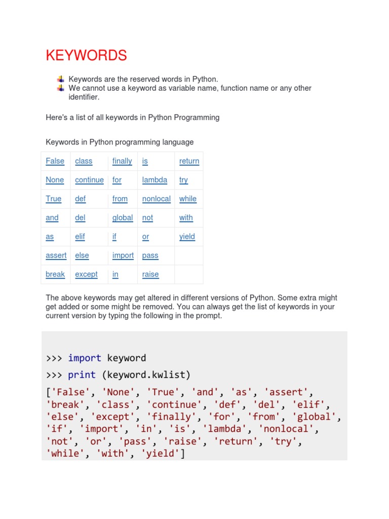Python Keywords List Of All Keywords In Python Programming Language