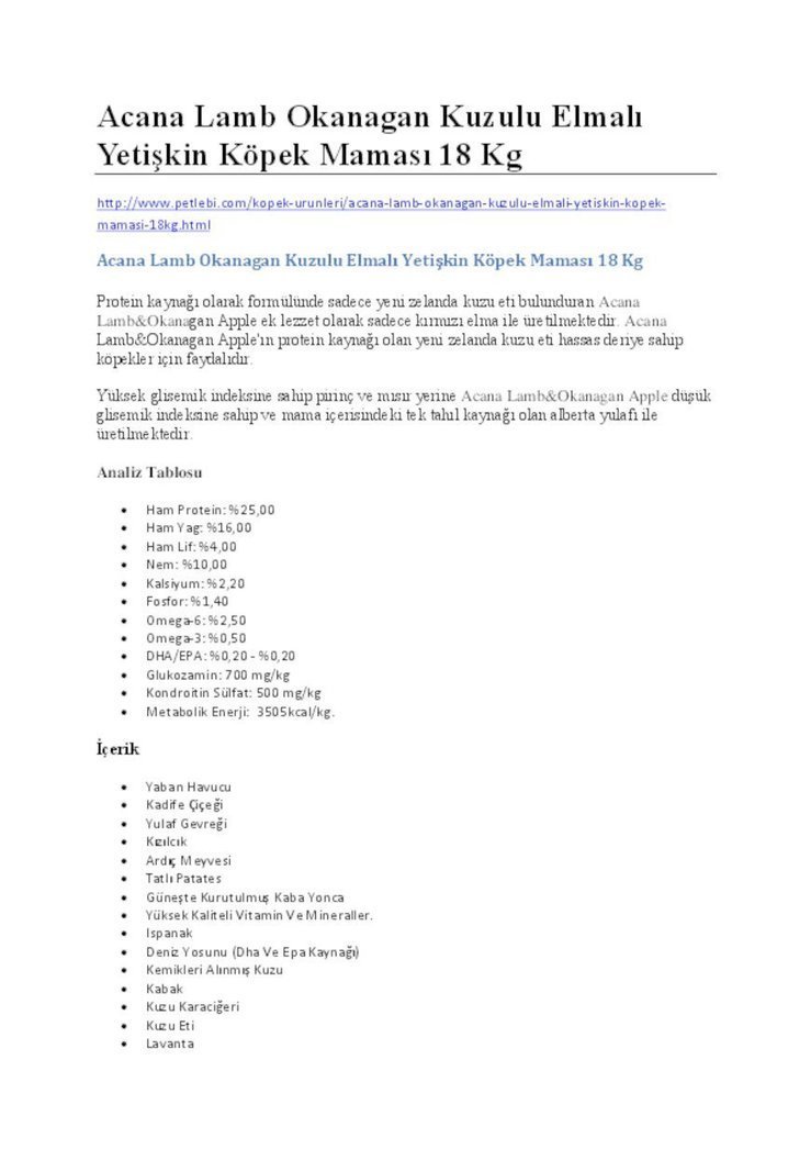 Acana Lamb Okanagan Kuzulu Elmali Yeti
